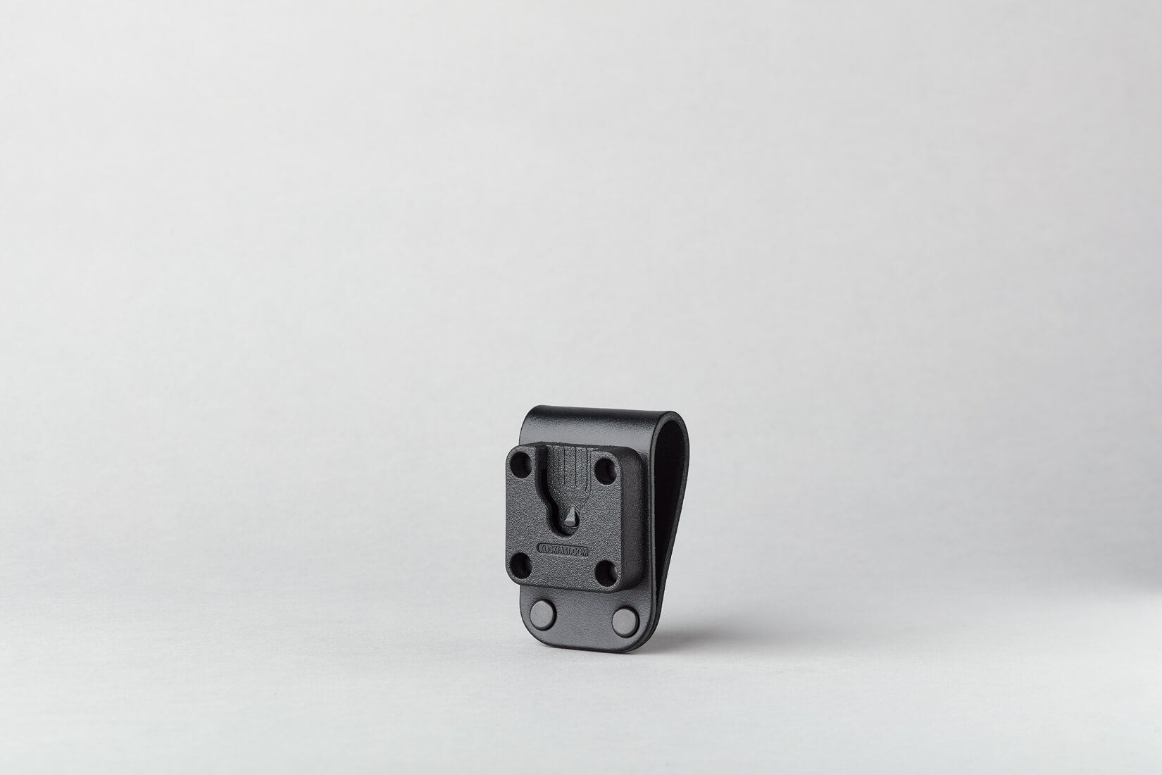 Un passant de ceinture en cuir, équipé d’un dock Klick Fast, à travers lequel une ceinture peut être passée avant d’être portée avec un pantalon. Permet de porter des appareils sur une ceinture. Cette version positionne le dock Klick Fast au niveau de la taille.